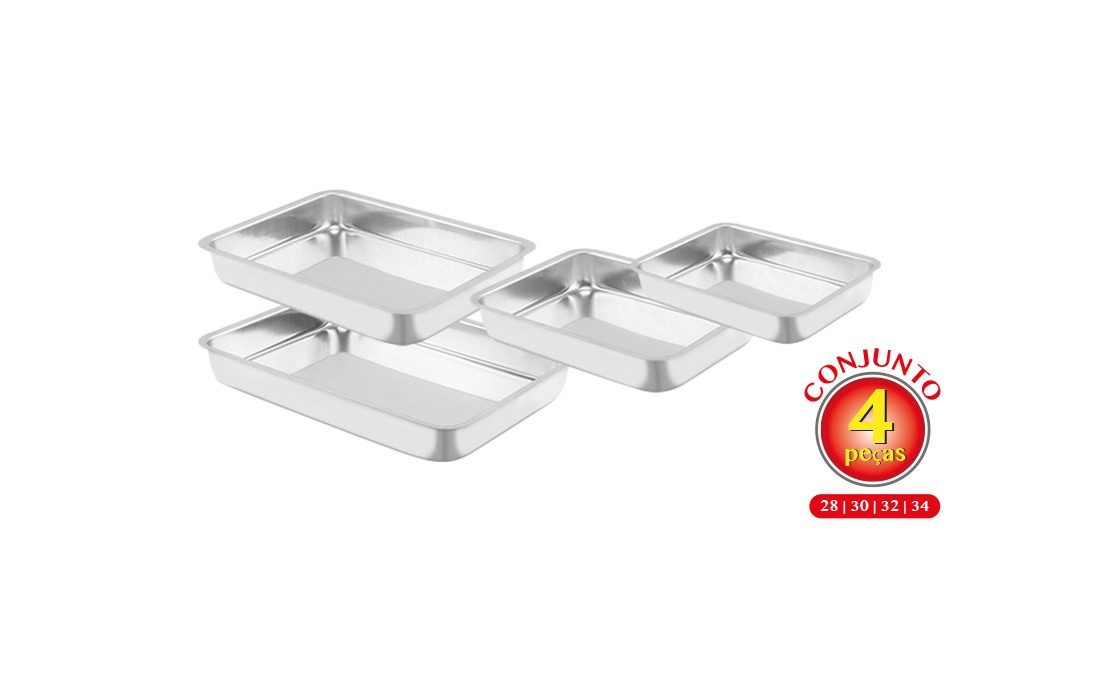 Assadeira Retangular Alta 04 Peças é feita em alumínio resistente a corrosão é uma assadeira de grande durabilidade,perfeita para fazer,bolos,tortas, assados,e outros. Ela contém uma borda facilitando para que seu bolo cresça e tenha espaço suficiente para assar.